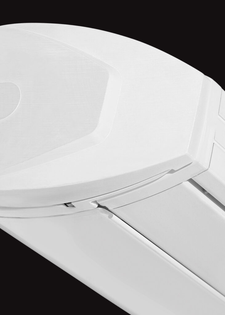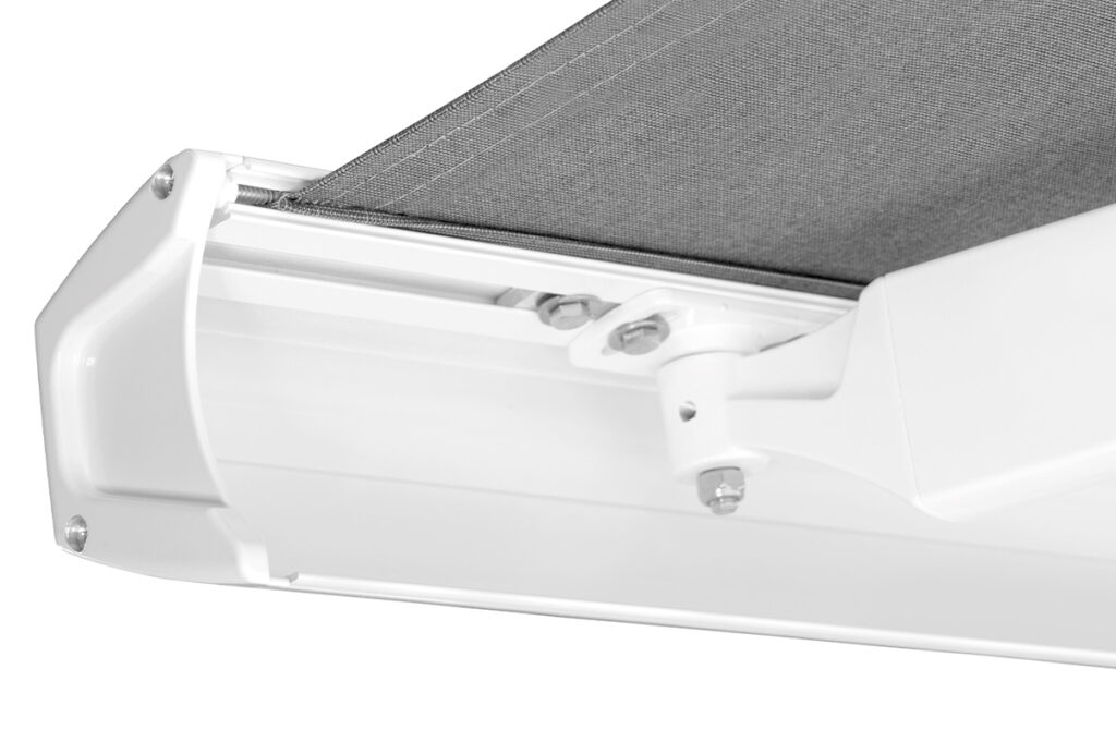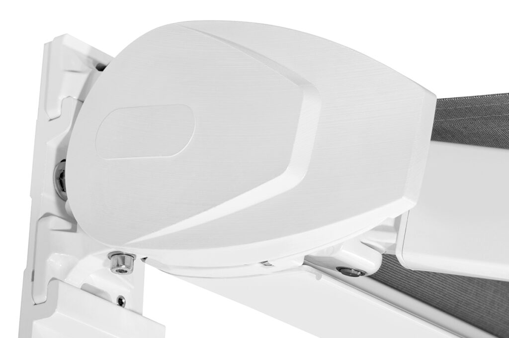 Hermetic cassette awning with folding arms that presents an unique design. It has a continuous inclination from zero to eighty-three degrees and it is