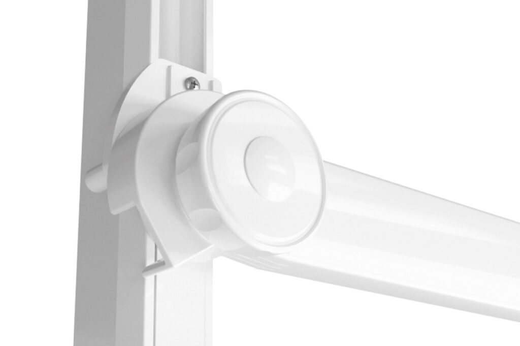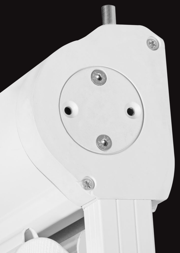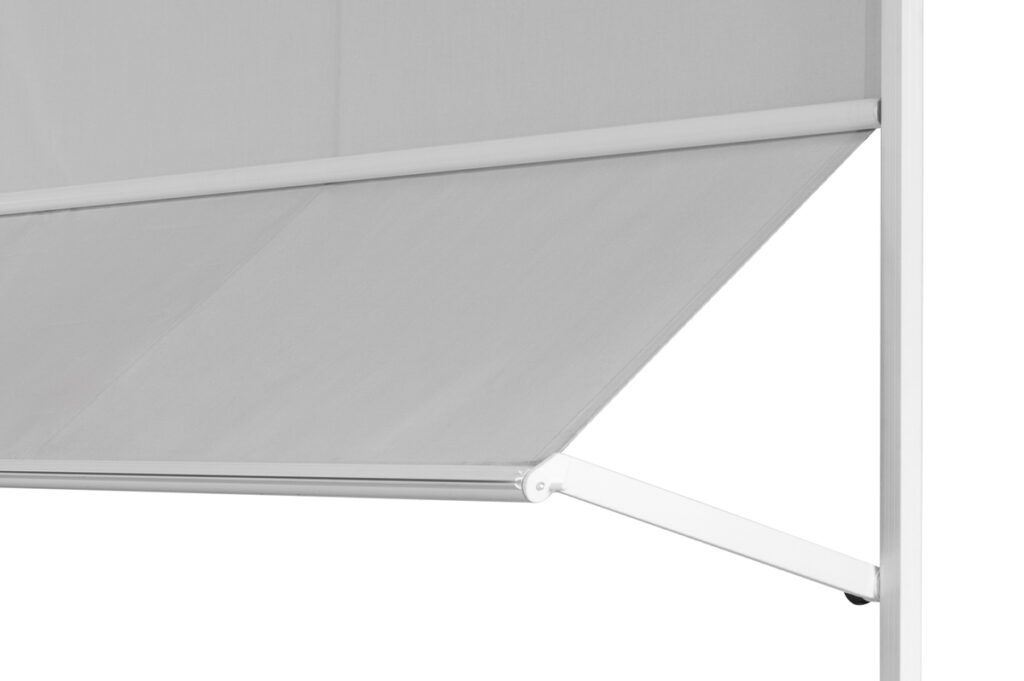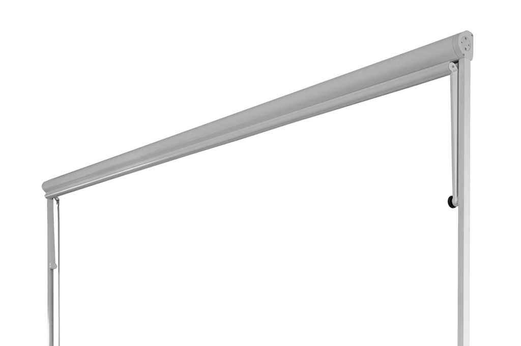 Drop vertical awning for balconies with arms that slide into sideways guides with or without spring. Easy to install with a pressure system. In the guide there is a rollover arms’ system that allows the terminal bar to go down till the end and to close totally the awning. Fabric can be contained in a cassette profile. Max. size: 480 cm width, 300 cm height and 60 cm projection.