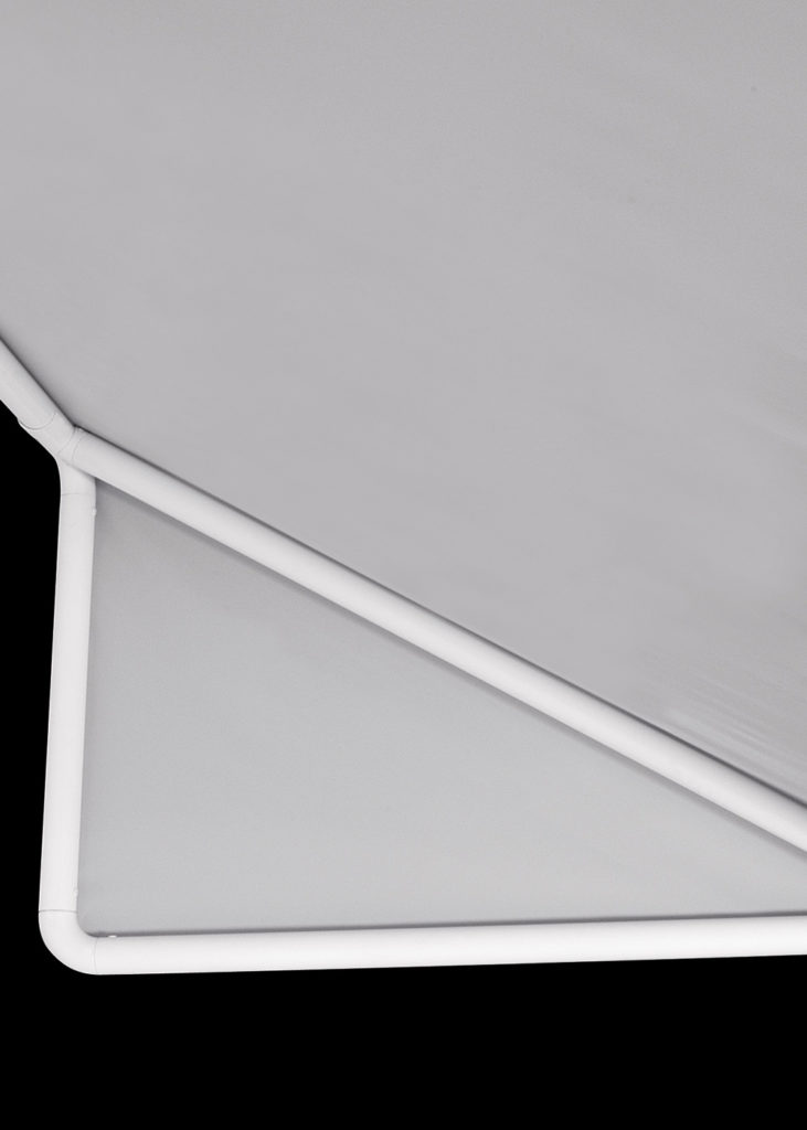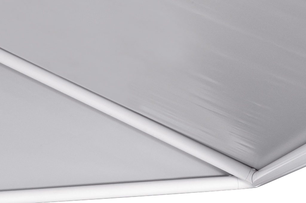 Capota con estructura sobre perfil redondo de aluminio. Un accesorio opcional permite a la capota cerrarse. Dimensiones variables.