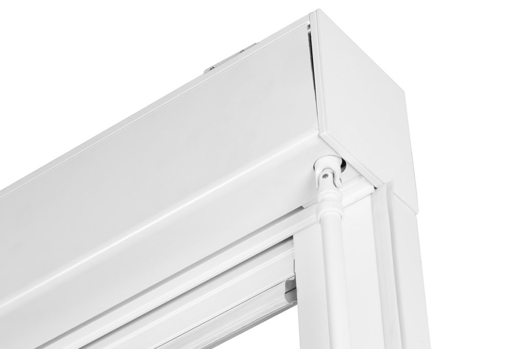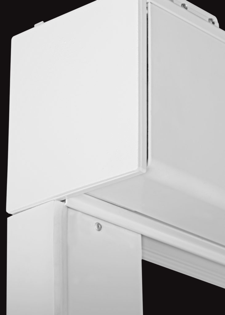 Store à toile pénétrante avec un système de verrouillage et de déverrouillage automatique. Lorsque la barre de charge arrive en bas, le mécanisme entre en action et la bloque ce qui permet de mettre le tissu en tension. Pour remonter le store, le tissu est abaissé et le mécanisme est relâché. Les guides latéraux peuvent être ouverts et inspectés. Le tissu reste à l’intérieur des guides grâce à la présence des barres coupe-vent en aluminium qui se déplacent à l’intérieur des guides. Le coffre supérieur peut être ouvert de sorte que l’on puisse changer la toile sans démonter le store. C’est un système auto-portant pré-assemblé.