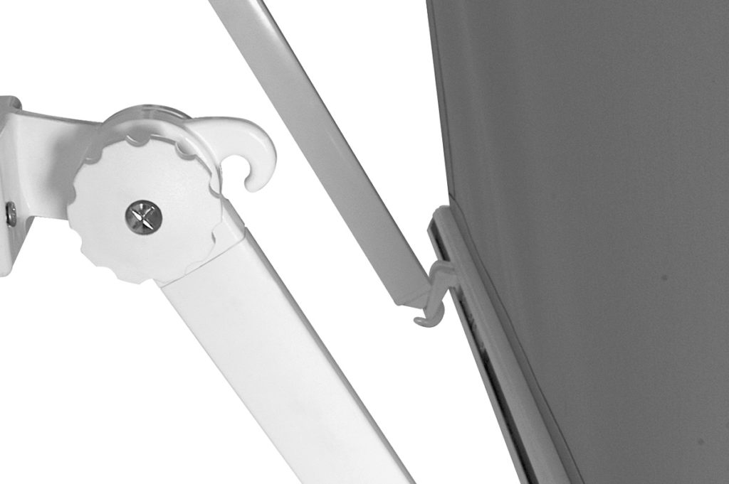 Store à descente verticale avec ou sans bras pour installation sur balcon et petite terrasse. Dimensions maximums: largeur 480 cm hauteur 300 cm et avancée 100 cm.
