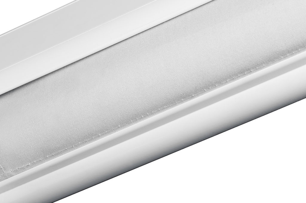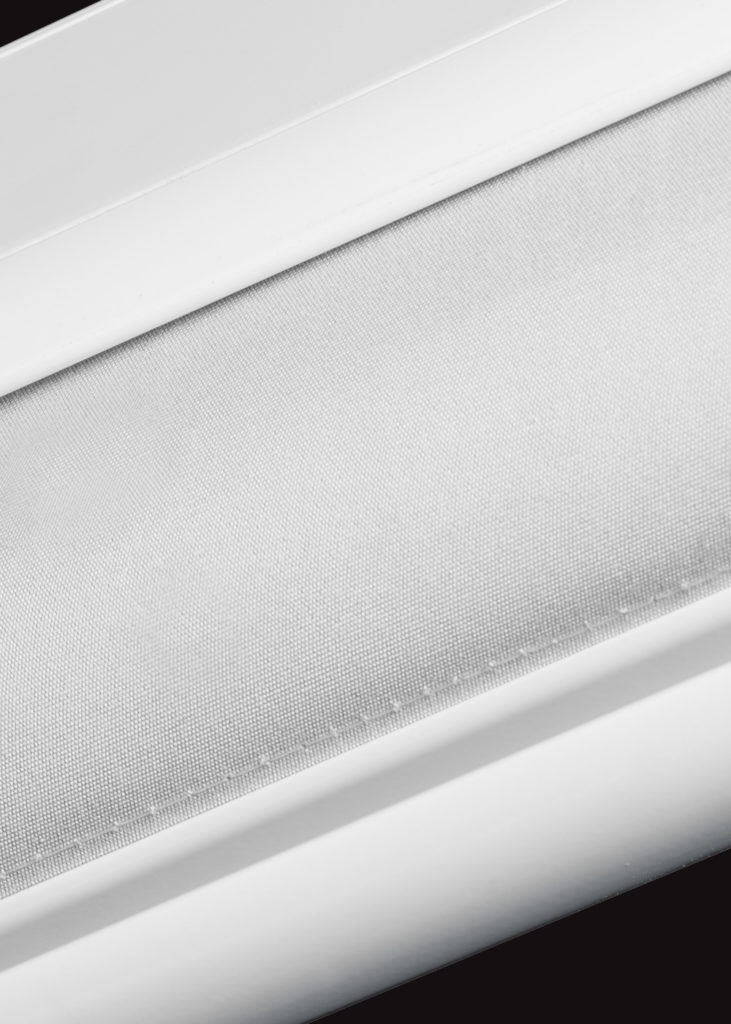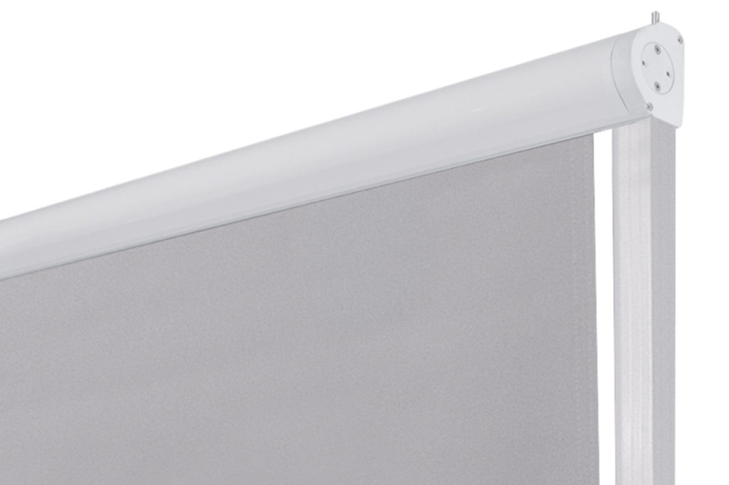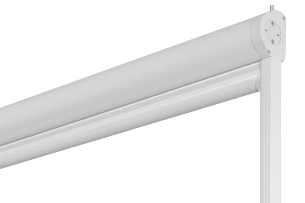 Store à descente vertical sans bras sur guides latéraux pour installation sur les balcons. Le tissu peut être contenu dans un profil cassette. Dimensions maximums: largeur 480 cm hauteur 300 cm.