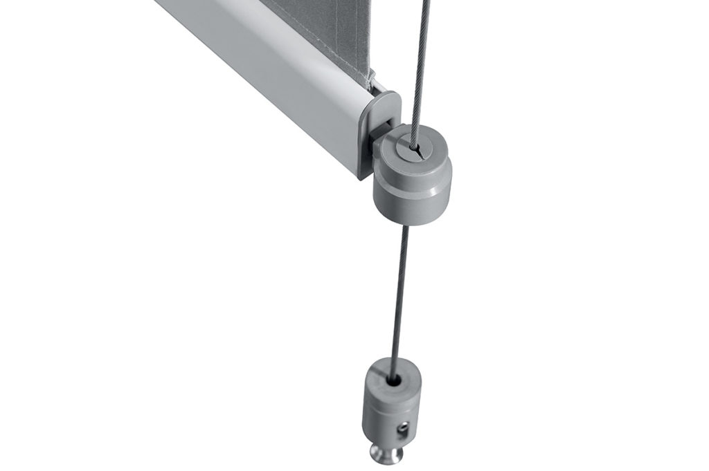 CALLAS GHOST è la versione della tenda a caduta con cavetto da 4 mm inox e con cassonetto di design squadrato.