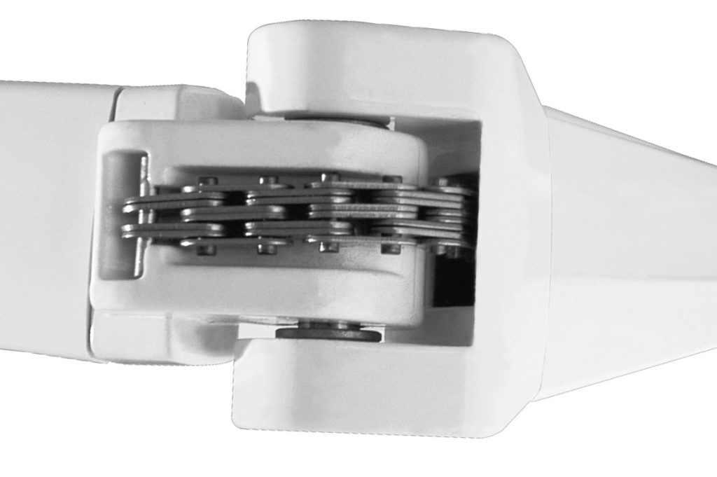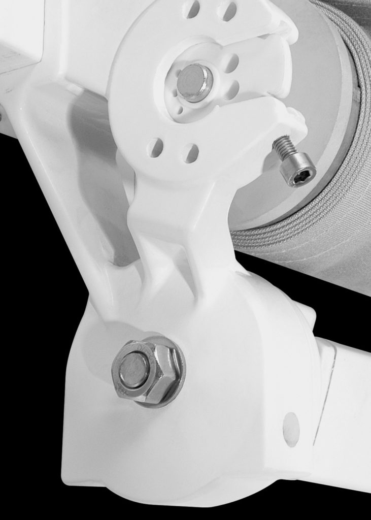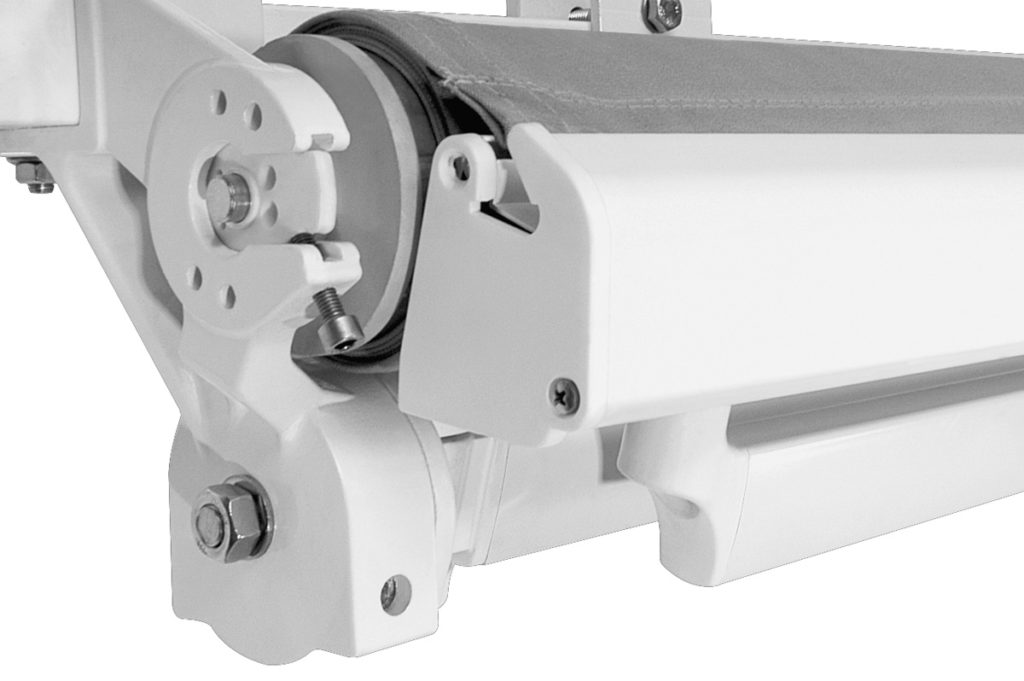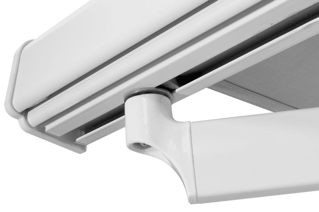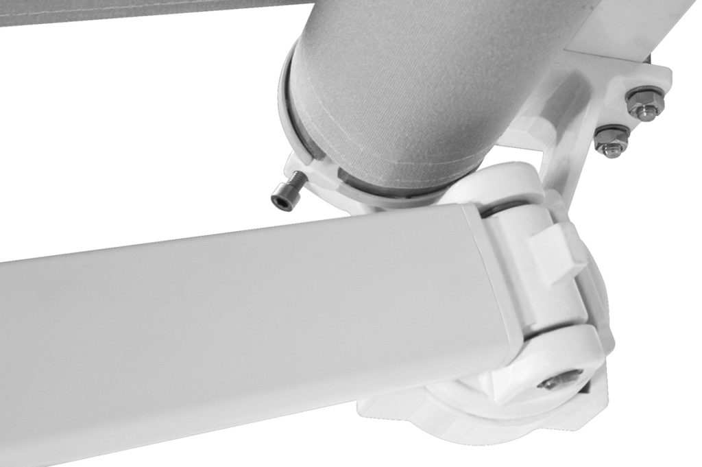 Tenda a bracci su barra quadra 40×40 mm con supporto braccio a posizionamento laterale fisso. Dimensioni massime modulo singolo: larghezza 480 cm e sporgenza 250 cm.